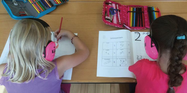 Na Suiza, alguns professores da primária estão imersos numa nova abordagem de aprendizagem criativa. As crianças pequenas têm um ouvido muito sensível e muito pouca proteção contra o ruído prejudicial. Por isso, utilizam protetores auditivos Peltor Kids da 3M, doados pela empresa para as aulas, de forma a reduzir o ruído ambiente, o que permite aos alunos focarem-se num programa de tarefas personalizado de acordo com o nível de cada um.